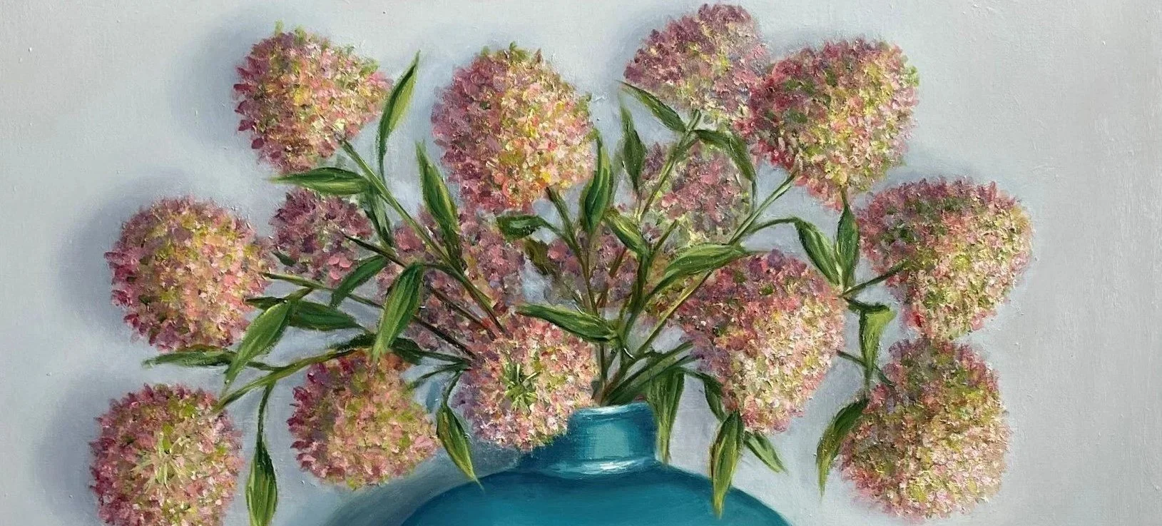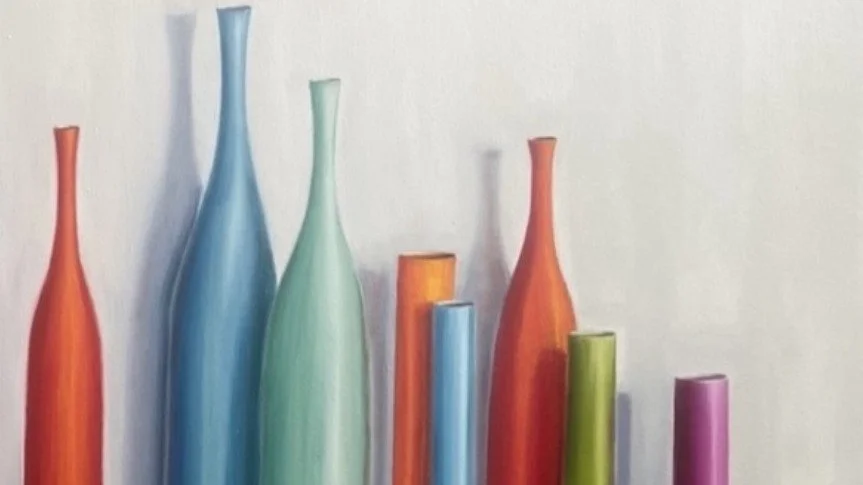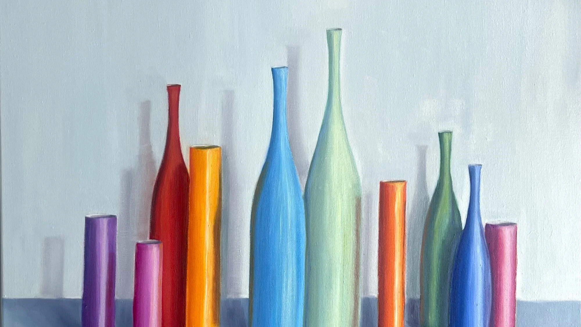 I find inspiration from taking everyday things and elevating them to something beautiful and positive. I strive to create an atmosphere with my works; conveying the calmness and serenity of the sea or Morandi inspired clusters of pots and vessels, or the uplifting and cheerful vibrancy of fruits and foliage. My focus is the sense of place, or essence of the object rather than a strict representation of it.